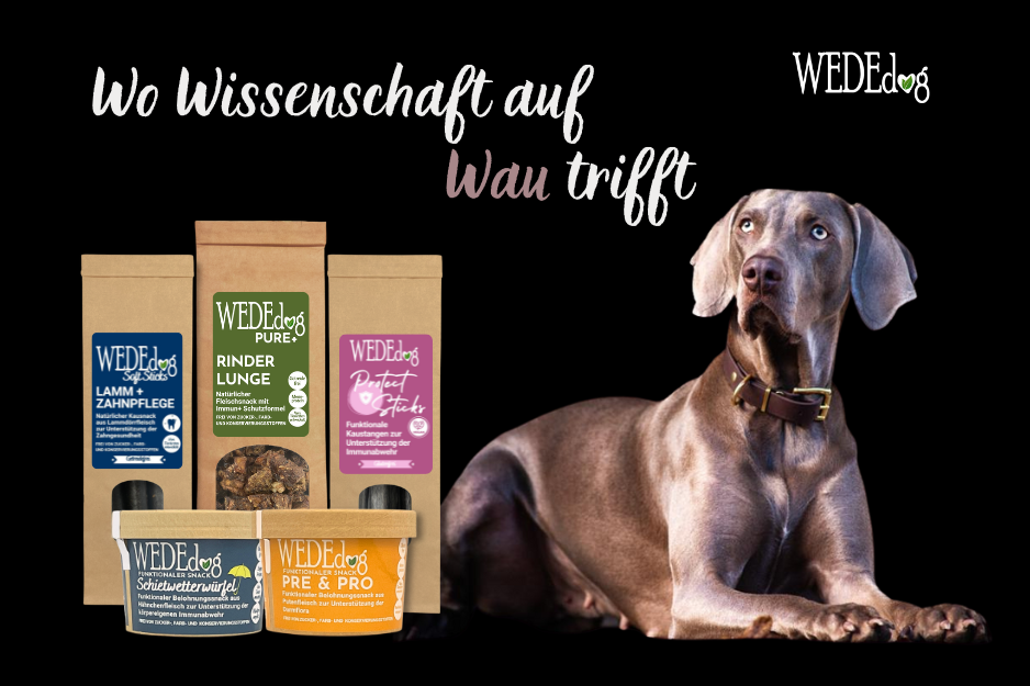 WEDEdog® steht für funktionale Hundesnacks und Toppings in Premiumqualität, hergestellt in Norddeutschland. Der Name WEDEdog findet seinen Ursprung im kleinen Örtchen Wedehof in Niedersachsen.